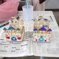 毎回大人気の工作教室です。今回は白く塗られているお城のペンたての色塗りをしました。どれも素敵な色合いで、可愛い作品を作っていました。