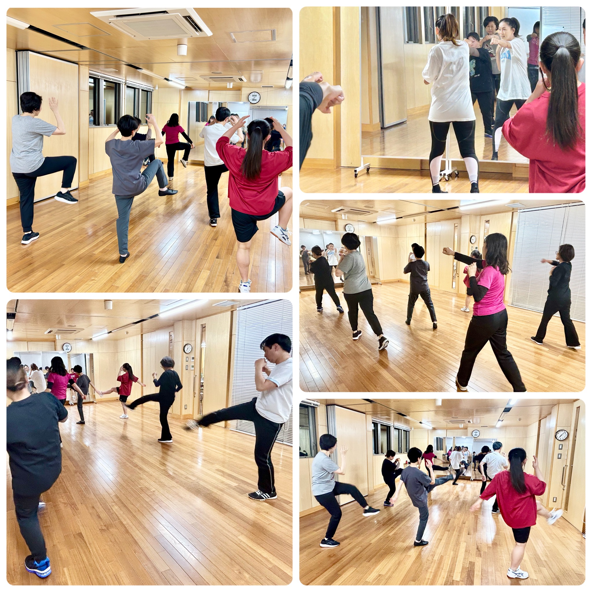 軽快なテンポの音楽に合わせ、パンチやキックの動作を組み合わせたエクササイズ!今回で3回目ですが、リピーターの参加者の方も多く、先生のカッコいい動きをお手本に、楽しく汗をかいてもらっています。あっという間に3回が過ぎ、次回12/5が最終回です。