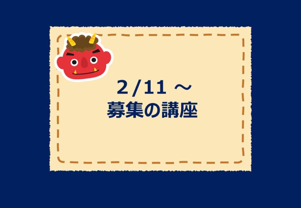 2/11(水・祝)9:00 より、申込受付開始(窓口&電話)の講座です!