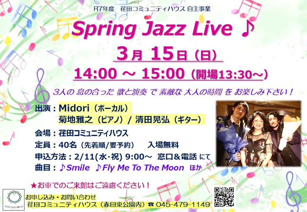 💛Spring Jazz Live ♪ ・・・ 3/15(日)開催