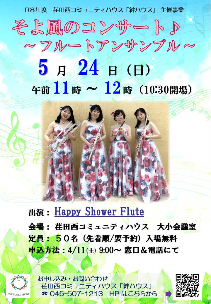 ◆ そよ風のコンサート ♪ ~フルートアンサンブル~・・・5/24(日)開催