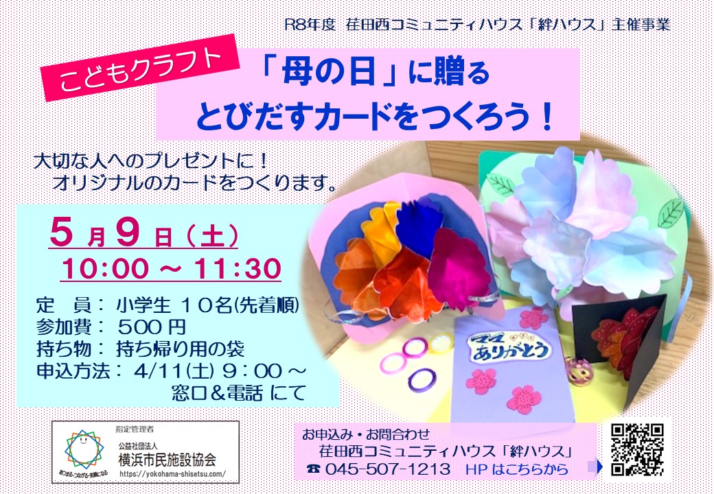 ◆「母の日」に贈るとびだすカードをつくろう!・・・5/9(土)開催
