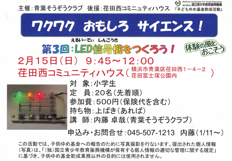 ~第3回:LED信号機をつくろう!~・・・2/15(日)開催