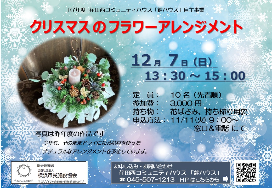 ◆クリスマスのフラワーアレンジメント・・・12/7開催