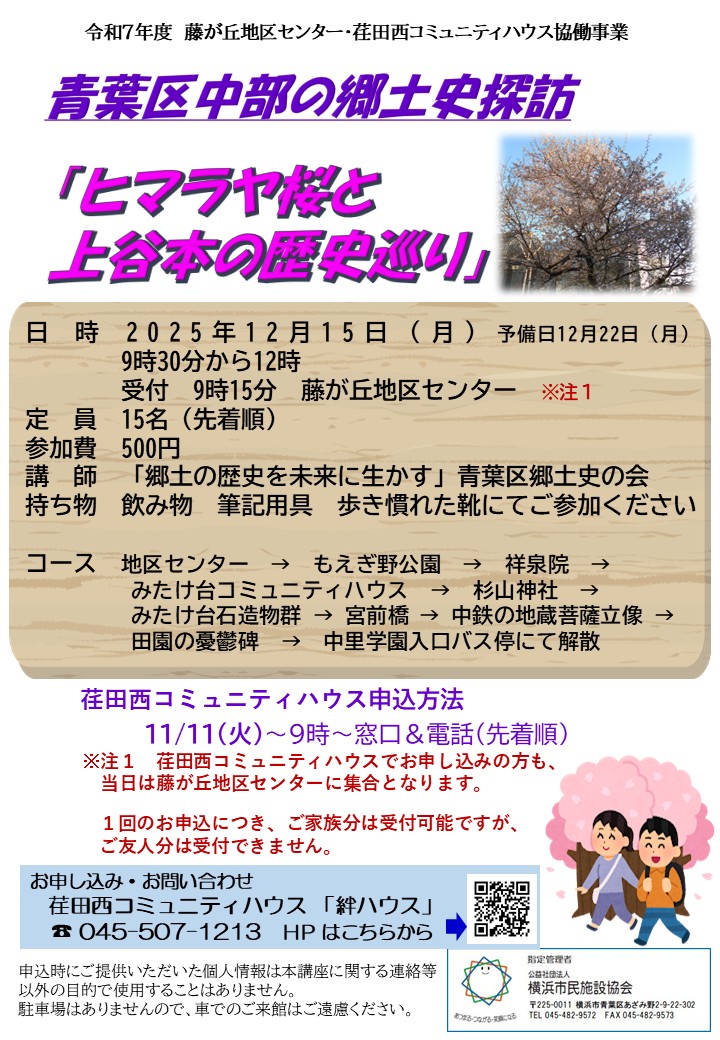 青葉区中部の郷土史探訪「ヒマラヤ桜と上谷本の歴史巡り」・・・12/15開催(荒天の場合12/22に延期)