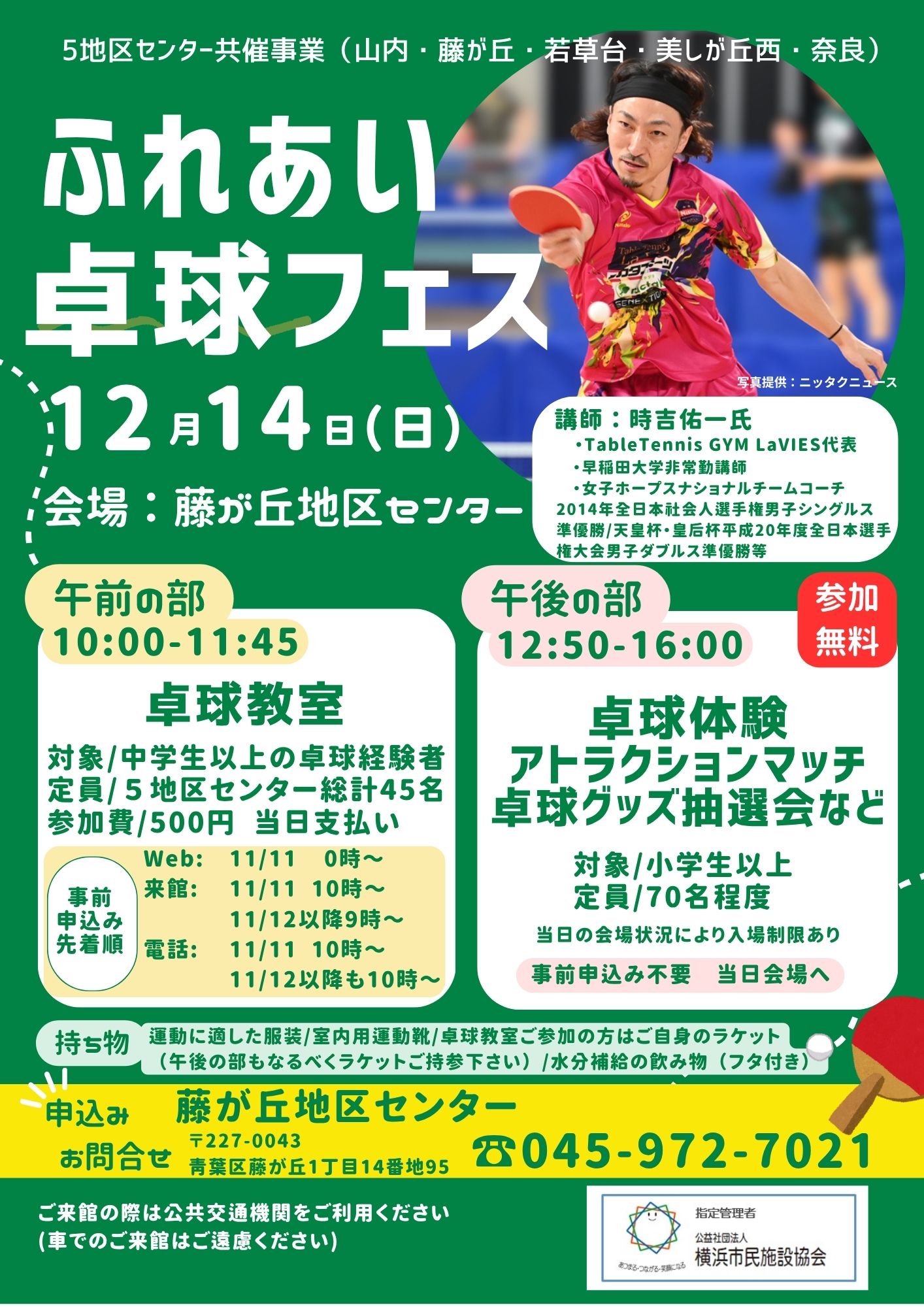 🏓横浜市5地区センター(藤が丘・山内・美しが丘西・奈良・若草台)共催事業