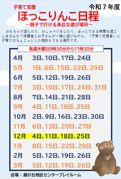 12月15日(月)9時半(藤が丘地区センター集合)~12時頃(中里学園入口バス停にて解散)