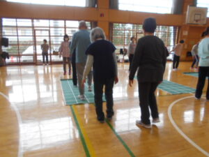 3月12日、19日(木)に「スクエアステップ」を行いました!前回、令和6年9月から1年半ぶりの開催になります。課題のステップを順番に一人ずつやります。