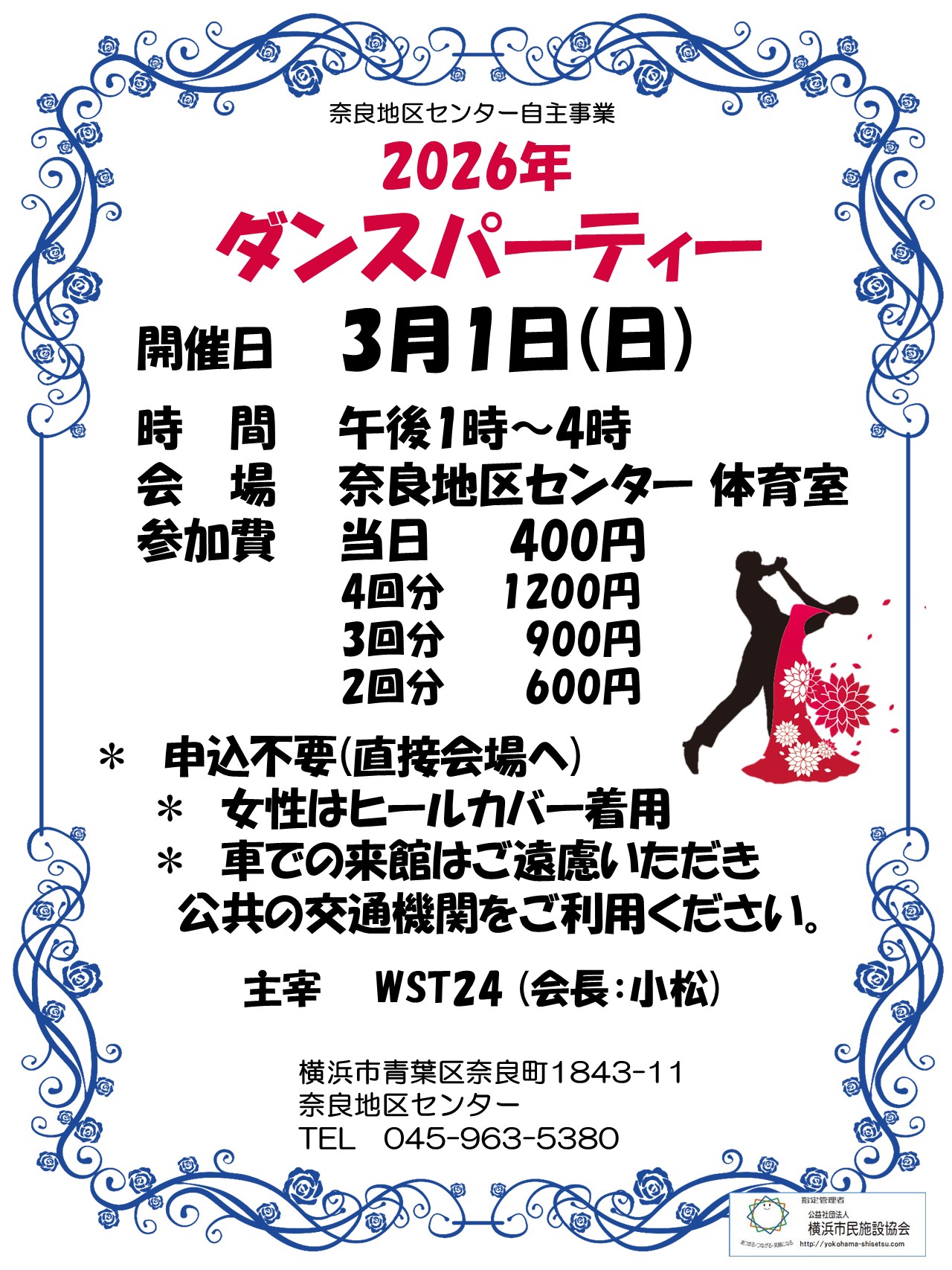 (WEBで満席となった場合でも、受付にて別枠、キャンセル待ちもございますのでお気軽に 奈良地区センター TEL045-963-5380までご連絡ください)
