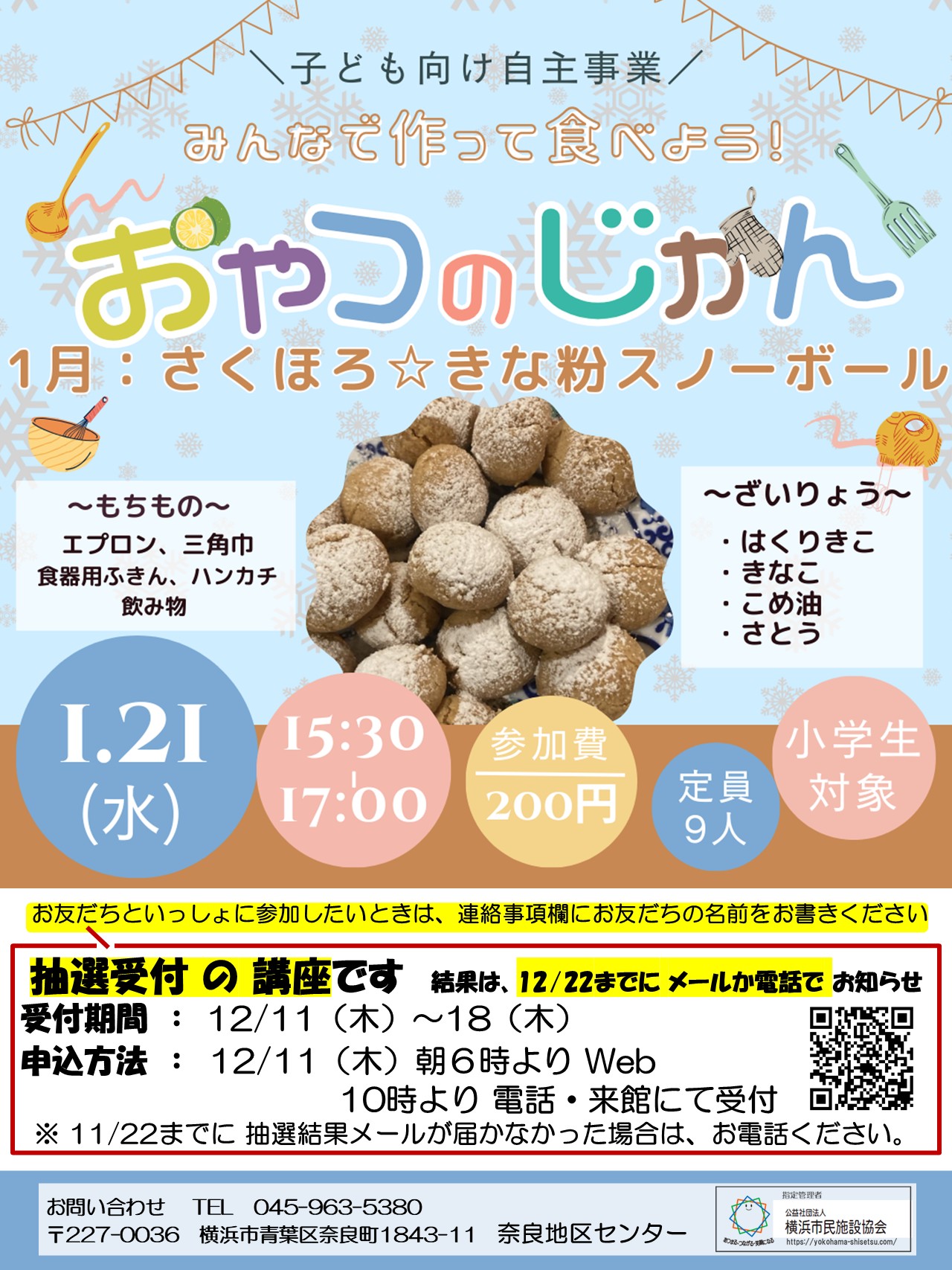 ※ 22日までに結果をメールでお伝えします。メールが来なかったときは、奈良地区センターにお電話ください。