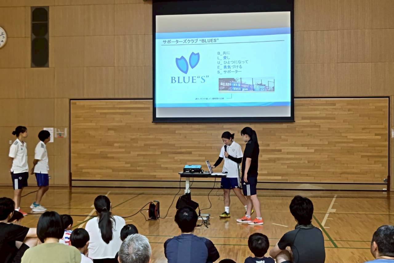 スライドを使った自己紹介の後、選手の皆さんと一緒にいろいなゲームを。