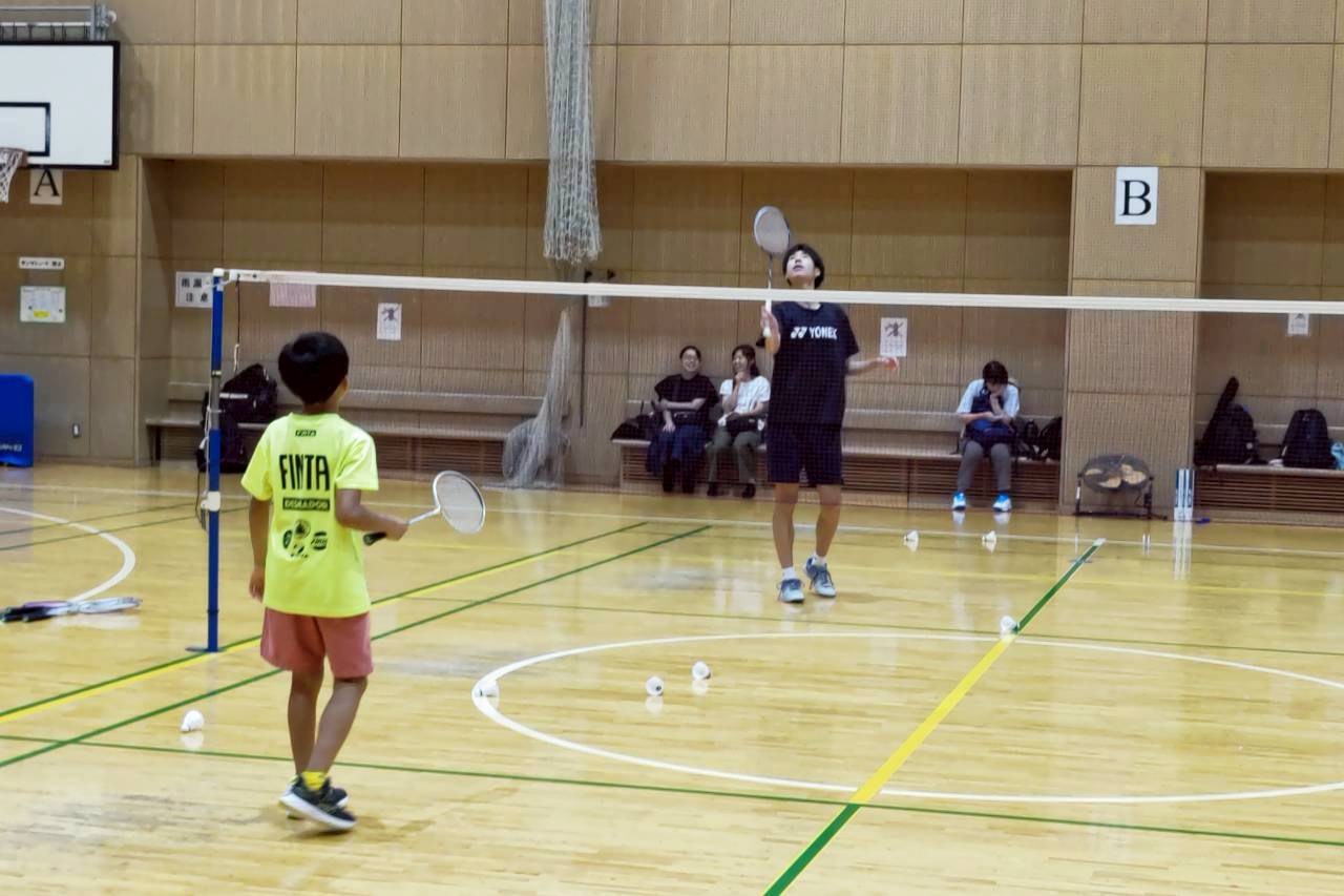小学生17名が参加(当日欠席1名)し、1年生から6年生まで、バドミントン経験もさまざまで、幅広い層の子どもたちが集まりました。挨拶・準備運動の後、学生の皆さんによる実践形式の乱打から始まりました。迫力あるシャトルの応酬に、子どもたちだけでなく保護者の方々も驚いた様子でした。異なるレベルの参加者に対して、それぞれの年代に合った丁寧な指導がなされました。ラケットの握り方やシャトルの打ち方など、基本からしっかりと学ぶことができる貴重な機会となりました。