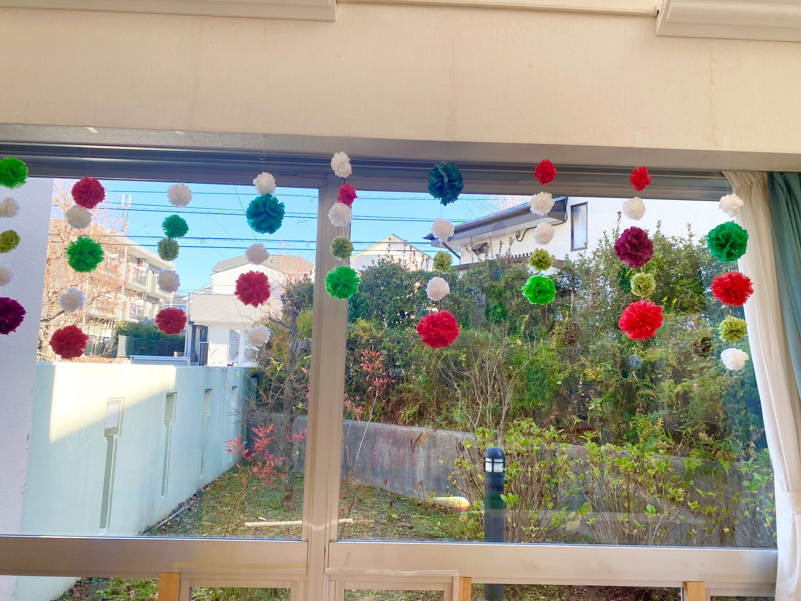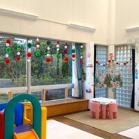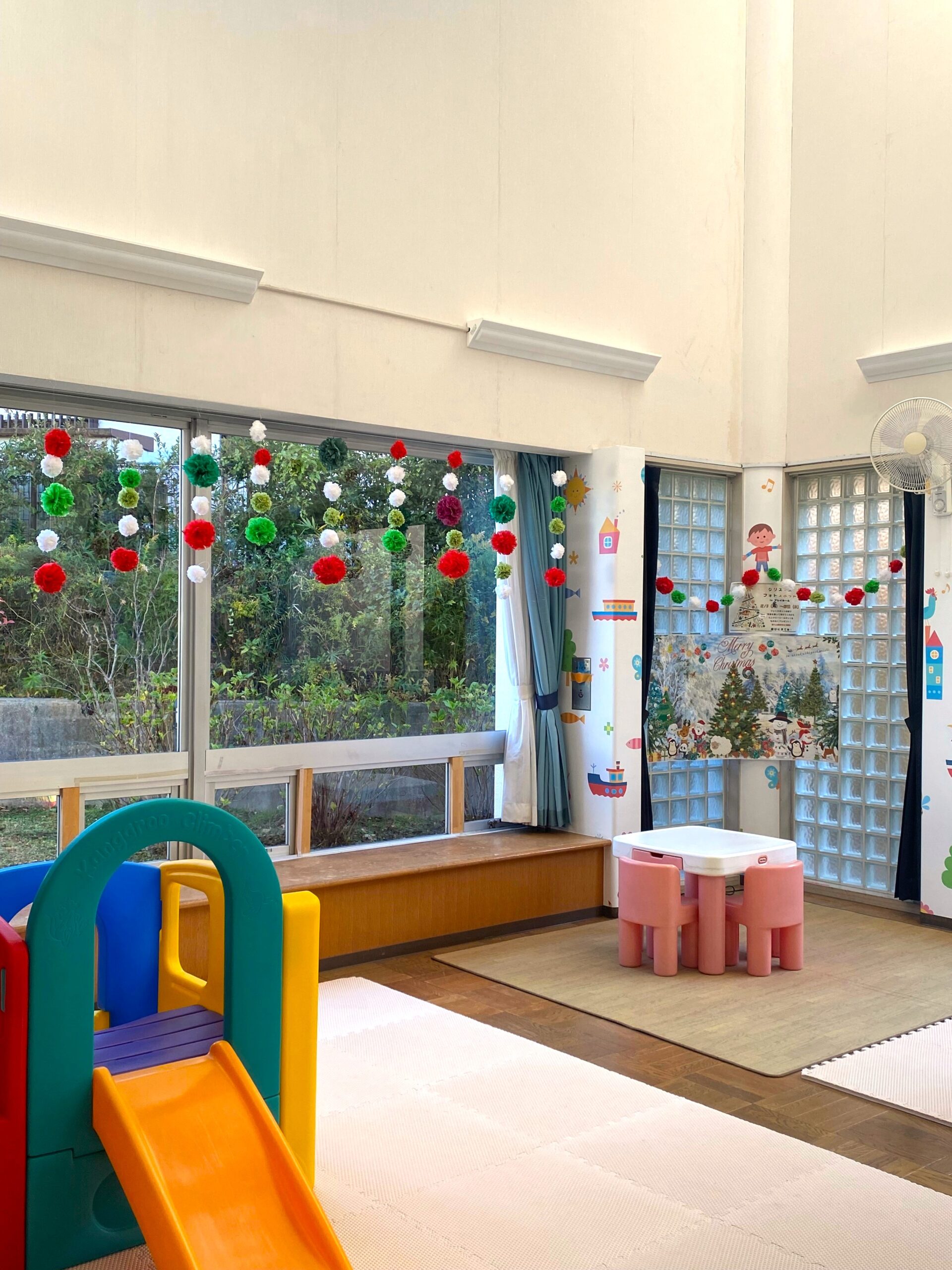 プレイルームでもクリスマスカラーに可愛く飾り付けられた装飾は