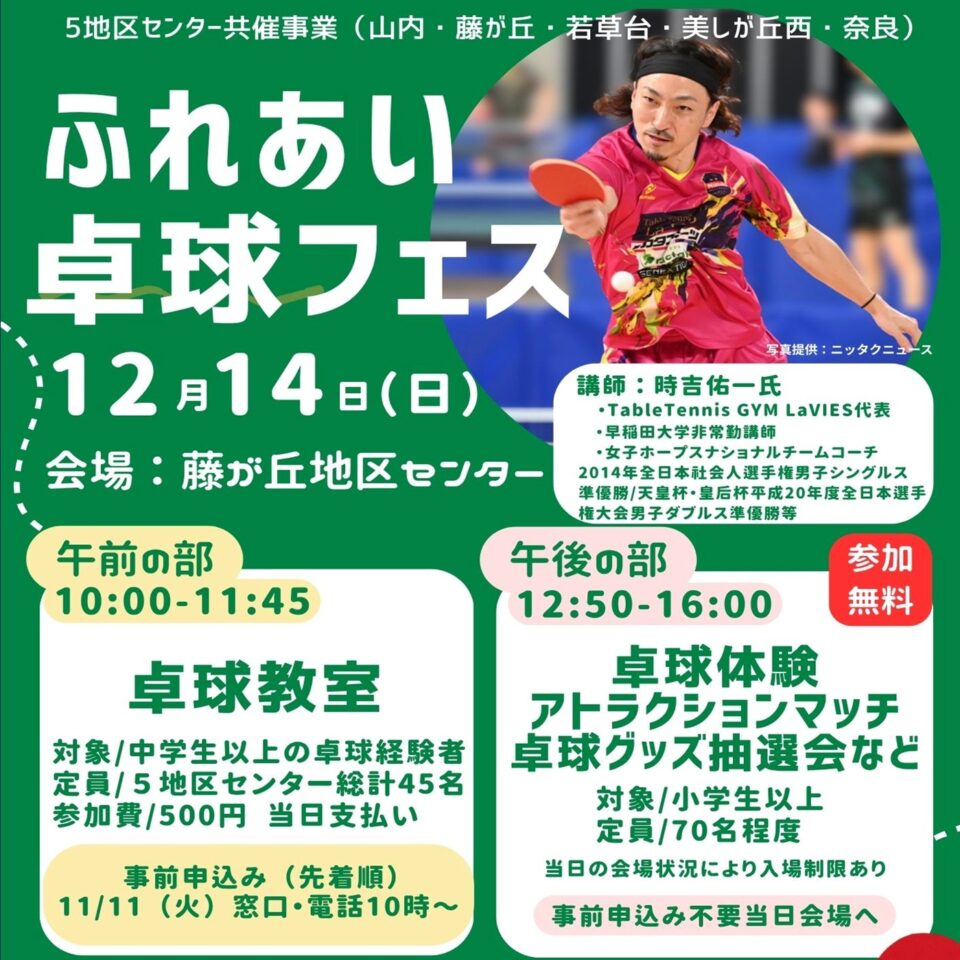 【ふれあい卓球フェス】を開催します!