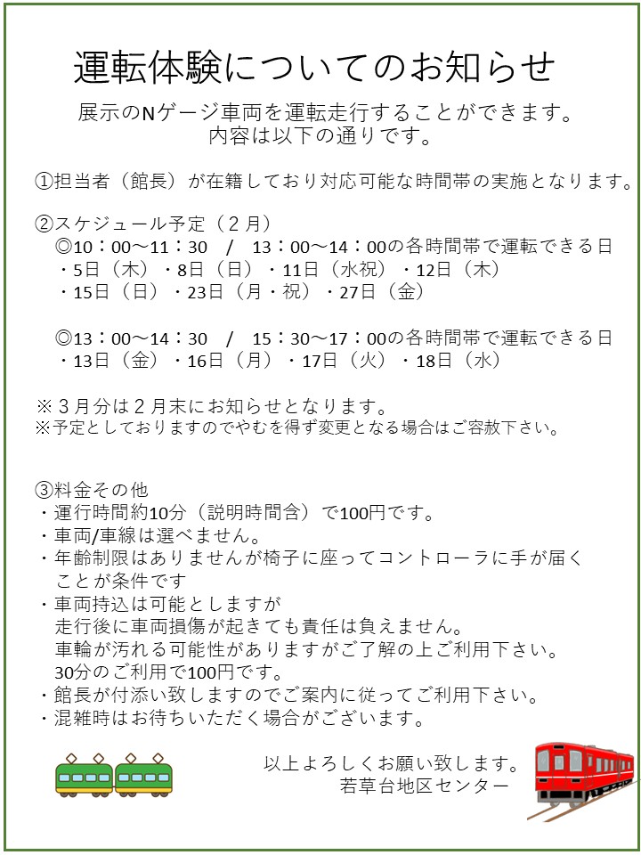 ミニミニ鉄道模型展では「展示のNゲージ車両を運転できる機会」を設けております。