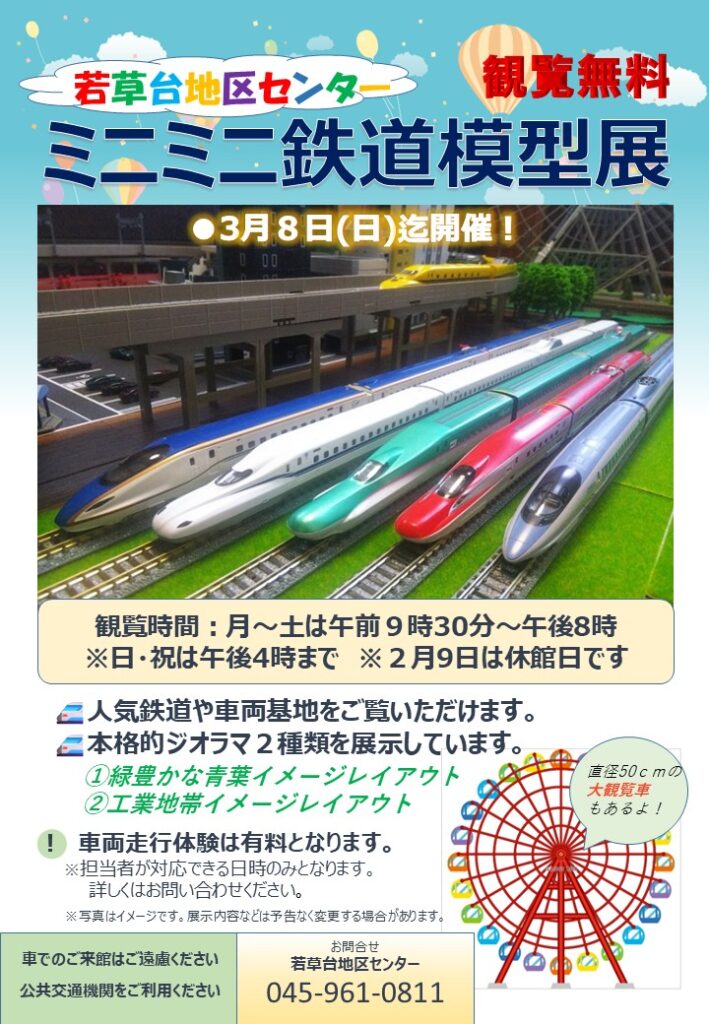 若草台地区センターではただ今、「ミニミニ鉄道模型展」を開催しております。