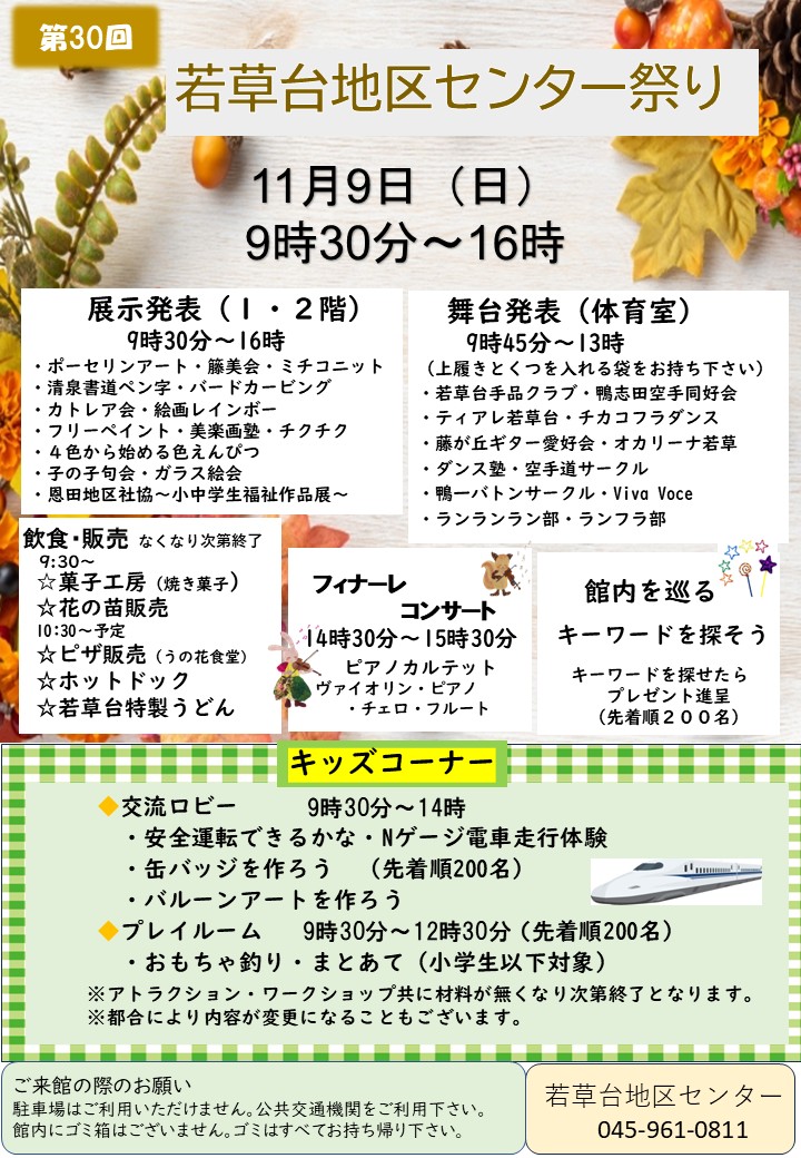 いつも若草台地区センターをご利用くださいまして誠にありがとうございます。